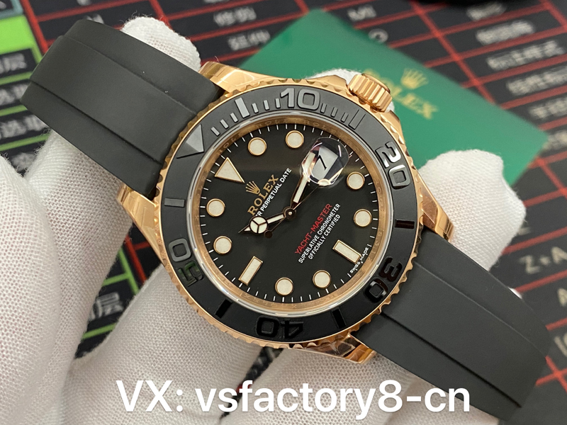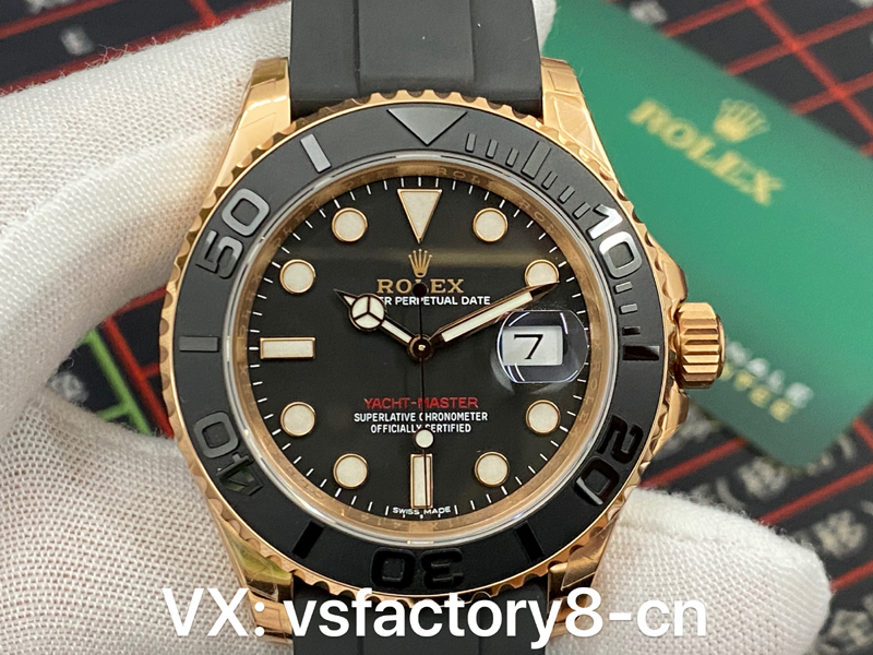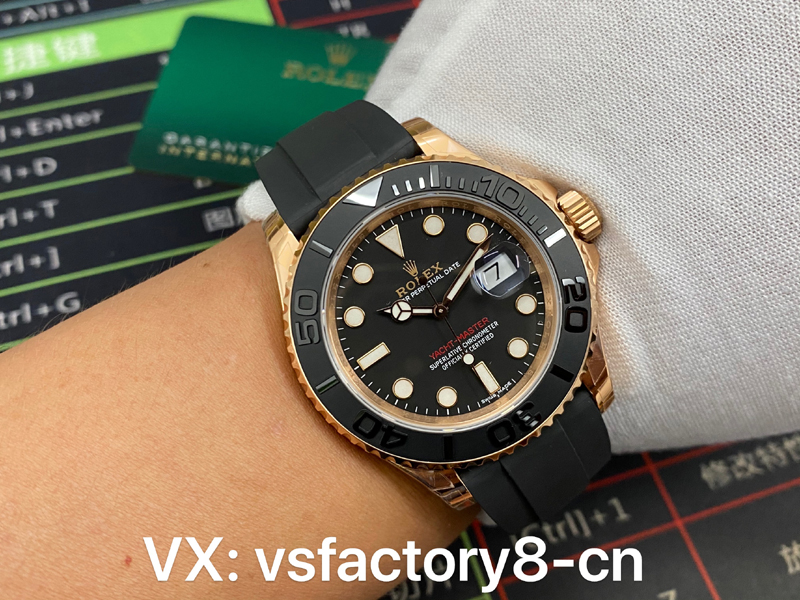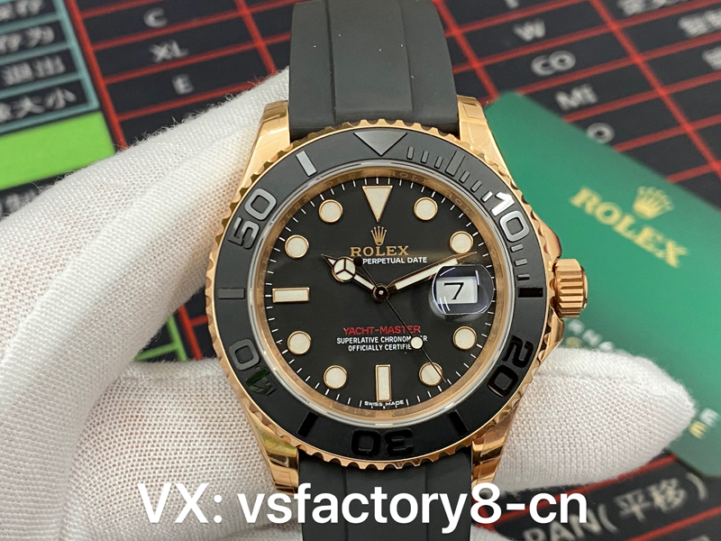 2022年VS厂手表官网劳力士复刻表新品预售:VS厂劳力士金游艇系列,机芯采用丹东3235机芯,持续超强储存动能,打遍市场上所有版本,采用玫瑰金壳套,陶瓷圈口,玫瑰金表扣。