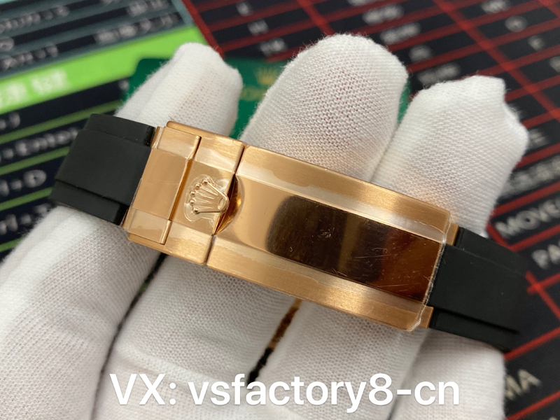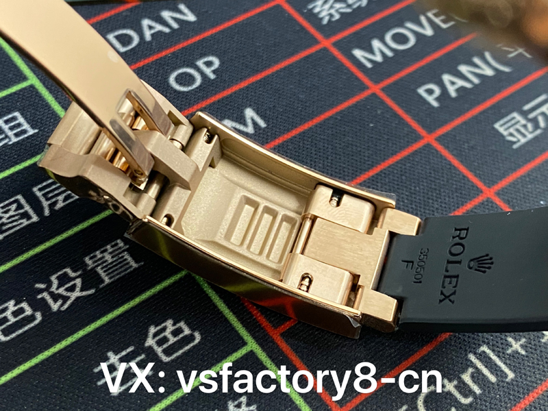 VS厂官网劳力士金游艇腕表所搭配的新款OYSTERFLEX表带可不是普通的胶皮表带。耐用程度可媲美金属表带,皆因表带内里采用弹性钛镍合金片连接至表壳和蚝式保险扣,外层则用高性能黑色橡胶将金属片包覆。