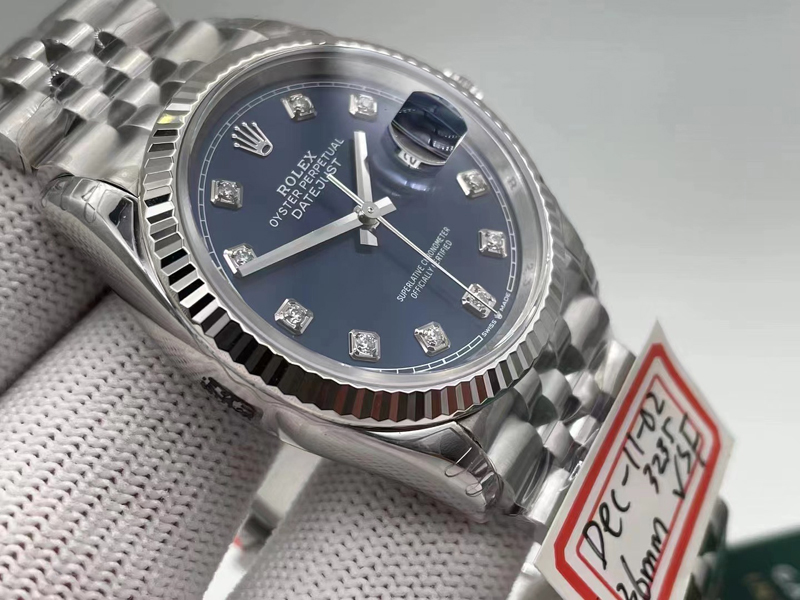 VS厂2020年劳力士日志新品:新版本劳力士m126234-0037钻蓝面日志系列36M,VS厂复刻表劳力士钻蓝面日志搭载丹东3235一体机芯,拥有72小时+储存动能。