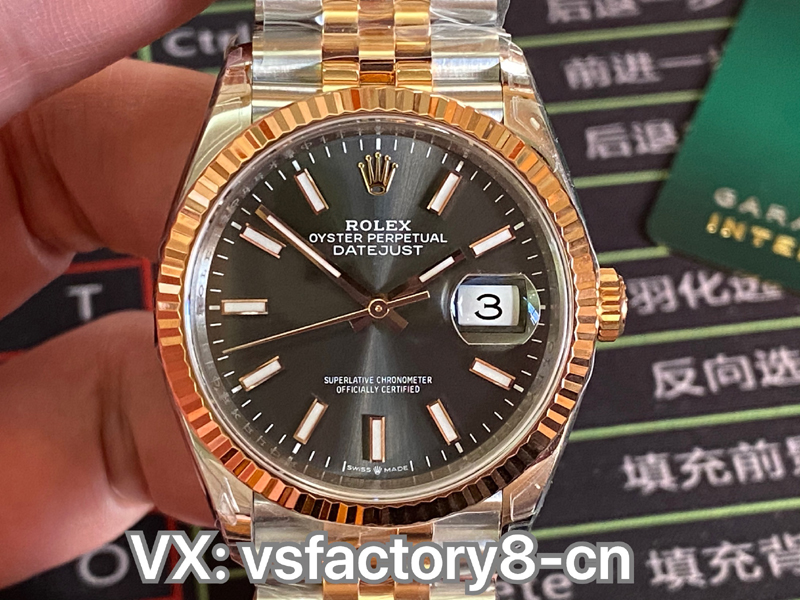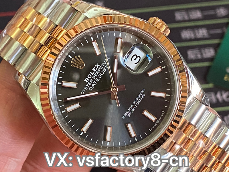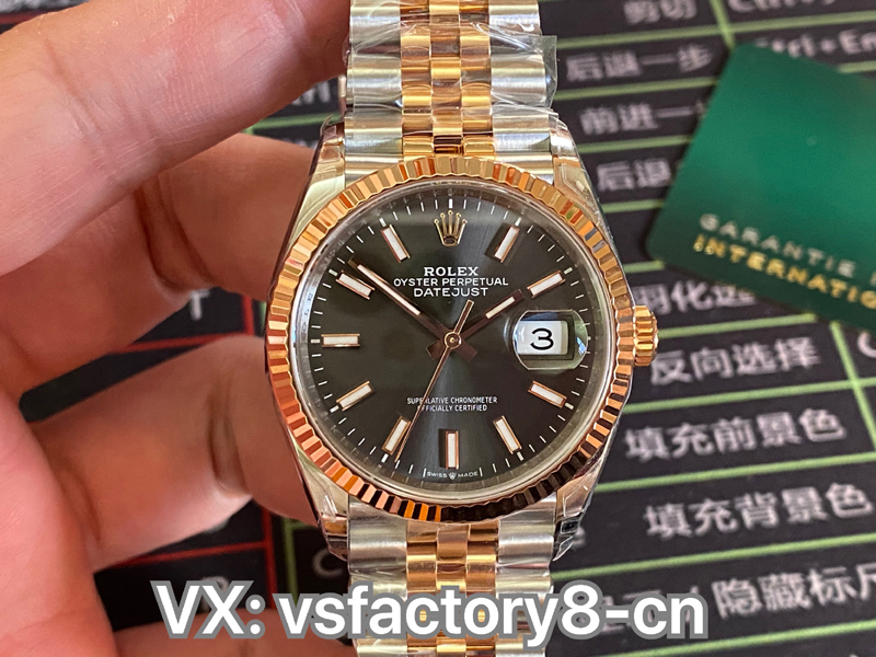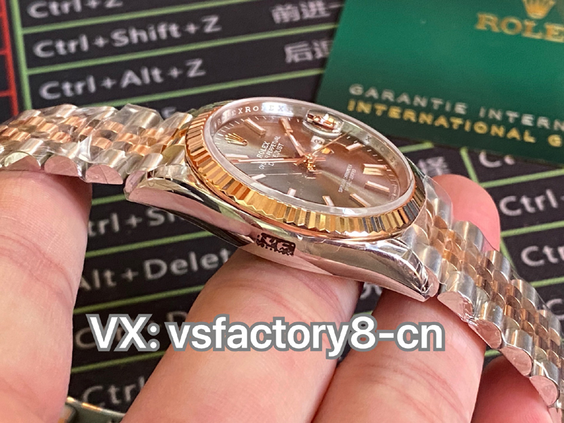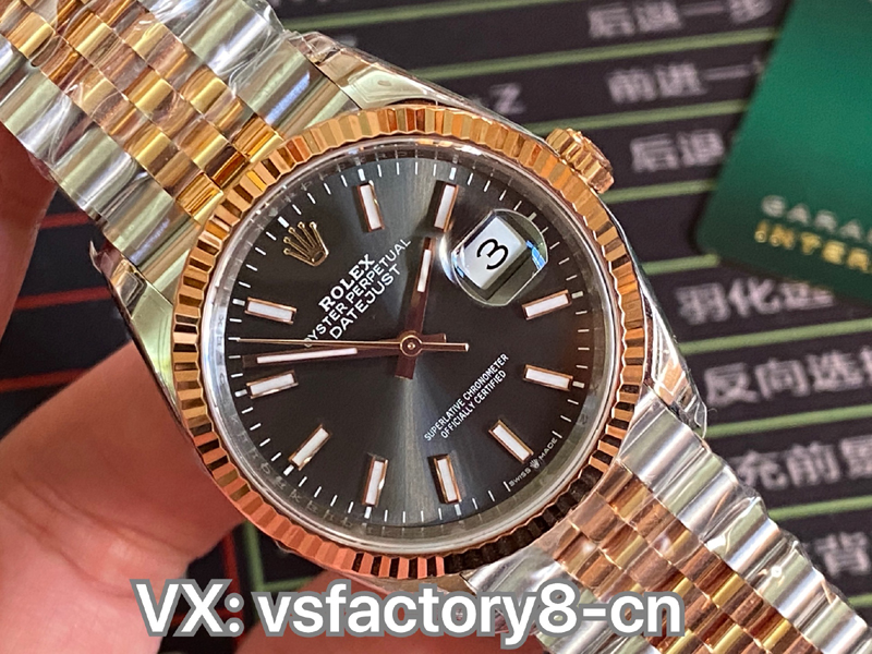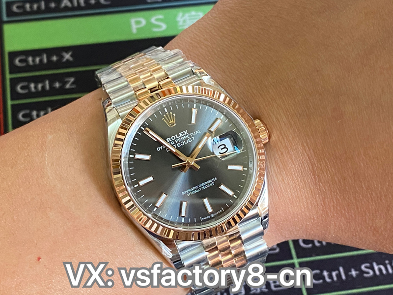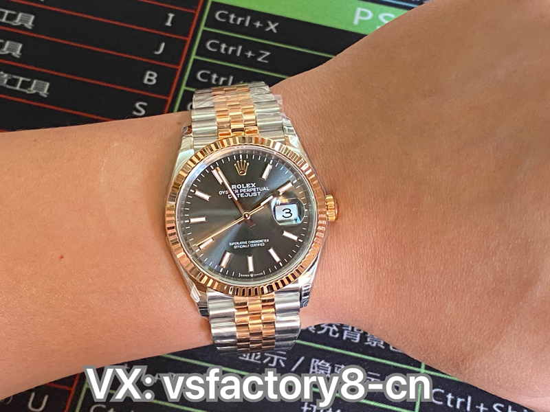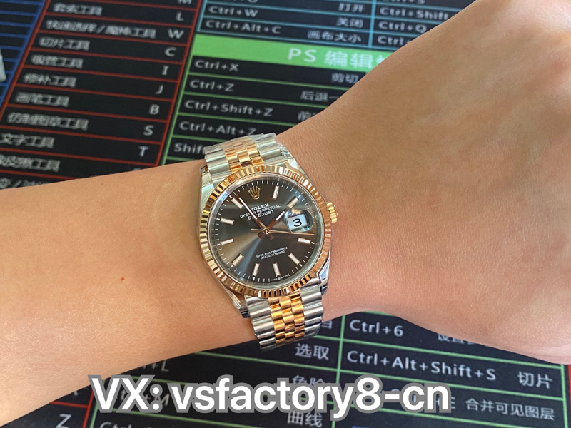 VS厂劳力士间玫深铑灰日志36m丹东3235机复刻表