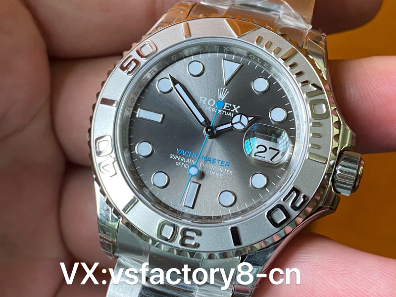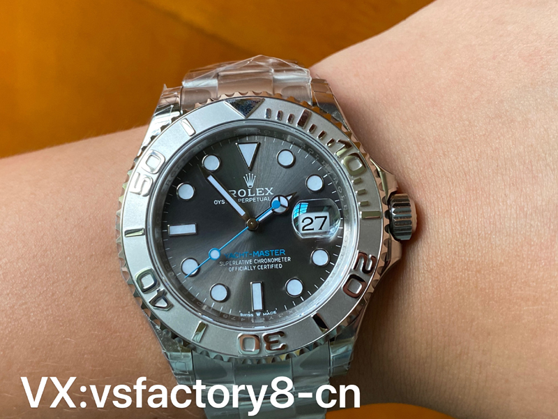 VS厂手表官网推出劳力士灰游艇40mm系列126622复刻表,左侧灰色面因为在柔光箱中,显得色差有些大,但是在自然光线下,相似程度高达95%以上,后面会放出自然光对比。