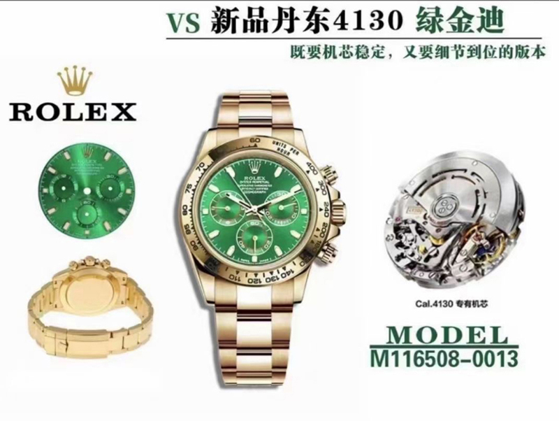 VS厂劳力士迪通拿绿金迪丹东4130机复刻表