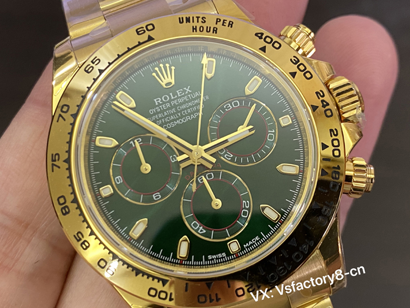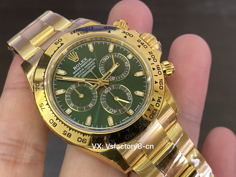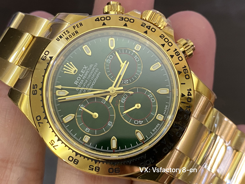 VS厂劳力士迪通拿绿金迪4130机芯,腕表直径40mm ,搭载丹东Cal.4130专有机芯,既要机芯稳定,又要细节到位的版本。