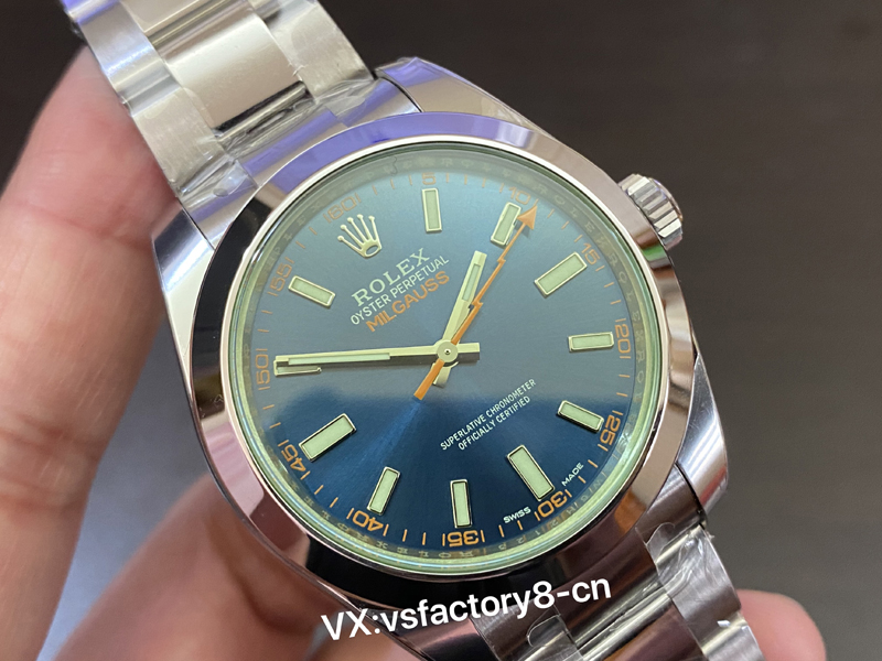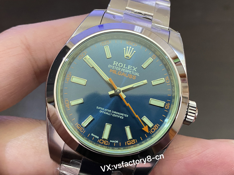闪电标绿玻璃采用904L精钢钢打造表壳,同步正品一致表径达40毫米,电光蓝色表盘经过工艺处理,呈放射纹状,与标志性的闪电形秒针相映成趣。