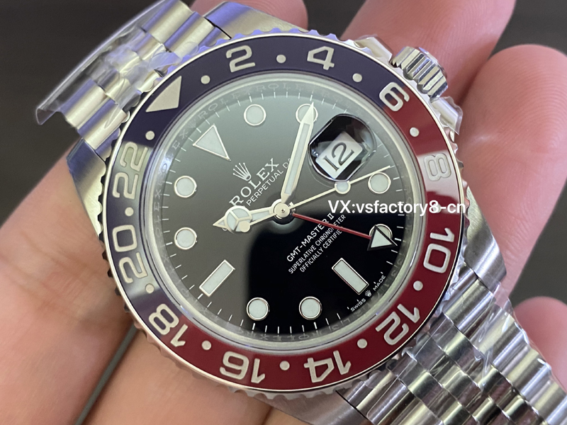 VS厂2025年全新劳力士格林尼治可乐圈在紫外灯照射变色上,红色更加的明显,紫外线照射对于一般人来说可有可无。