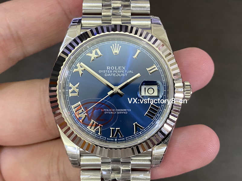 VS厂劳力士41mm罗马蓝面日志V2版无疑将复刻表的做工提升到了一个新的水平,每一处细节都经过严格把控,力求做到尽善尽美,特别是表圈,选用了钢材质锻造,狗牙表圈进行了切割打磨,而且还进行了三次镀铂金,经过深度的抛光工艺处理,如同一致的闪亮和光泽,非常对版也非常漂亮,针对表镜,VS厂选择了蓝宝石水晶材质,具有极高的抗划伤性能,蓝宝石水晶更不易出现划痕,保证了表盘的清晰可读性,此外,搭载的蓝宝石表镜的透光率也非常高,即使在逆光的情况下,表友依旧能清楚地读取时间。