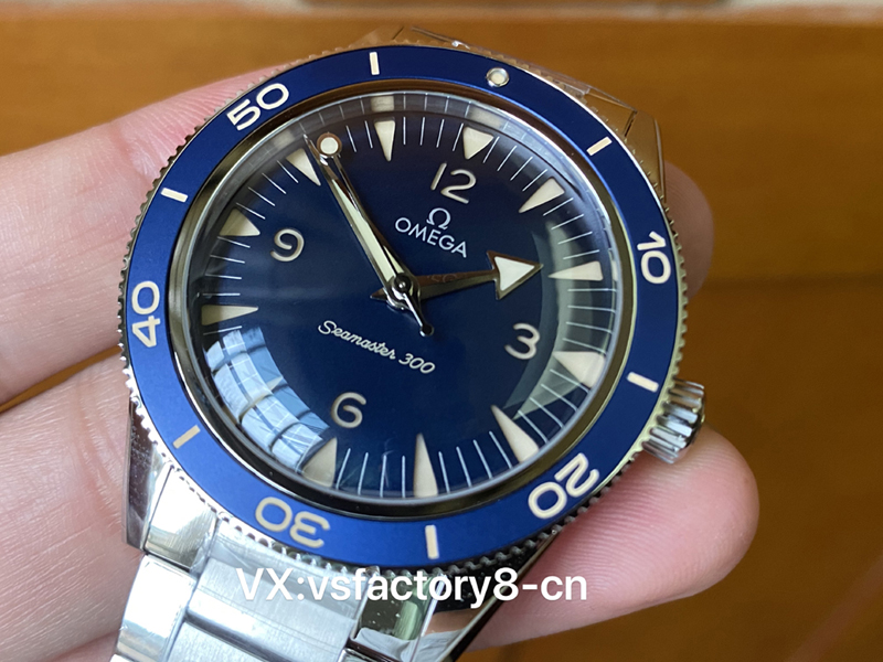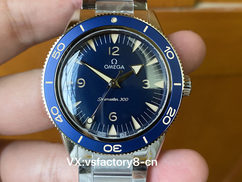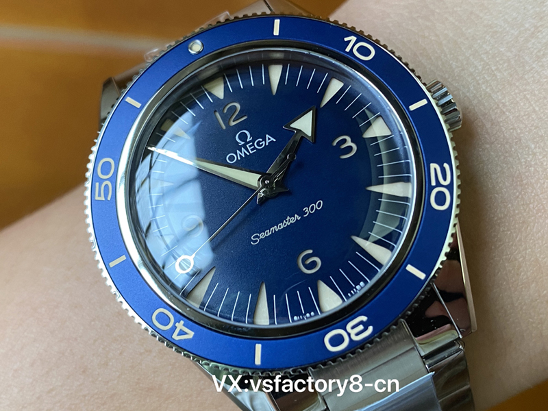 在做工方面,VS厂一向以其精细的工艺著称,VS厂欧米茄复古蓝幽灵党海马300米这款复刻腕表的每个细节都经过精心设计和打磨,首先,表壳采取了316L精钢材质锻造,具有良好的防锈性和抗磨损性,表壳的抛光处理极为精细,即使在阳光直射下,仍然焕发出迷人的光泽,表壳与表镜之间的缝隙处理得无比严密,避免了水分和尘埃的侵入,表壳的细节做工处理的非常到位也非常对版,确实值得入手。