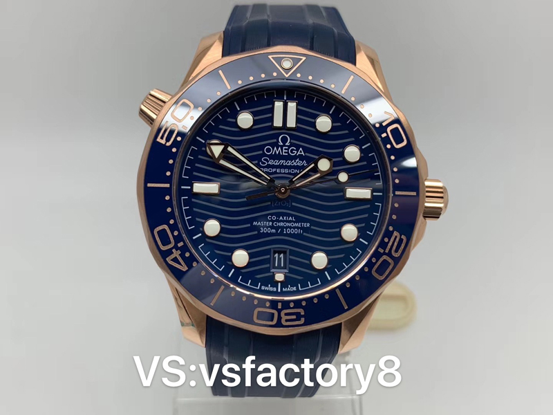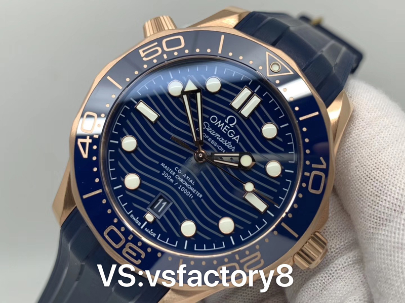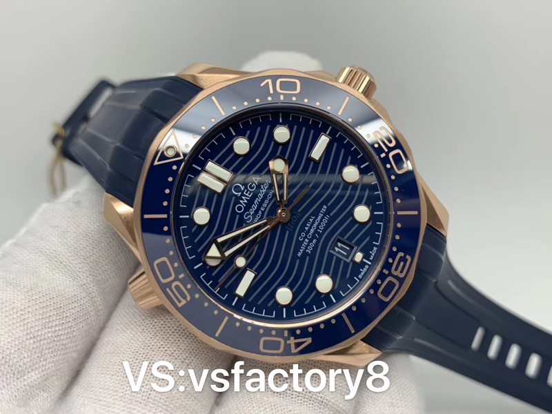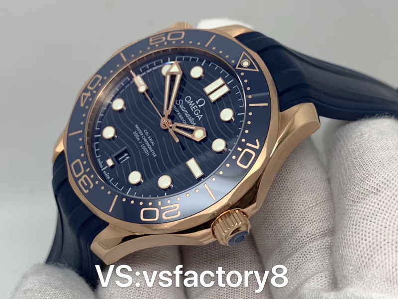 VS厂手表官网首枚尊享版欧米茄海马300米全玫瑰金蓝盘独家发售!