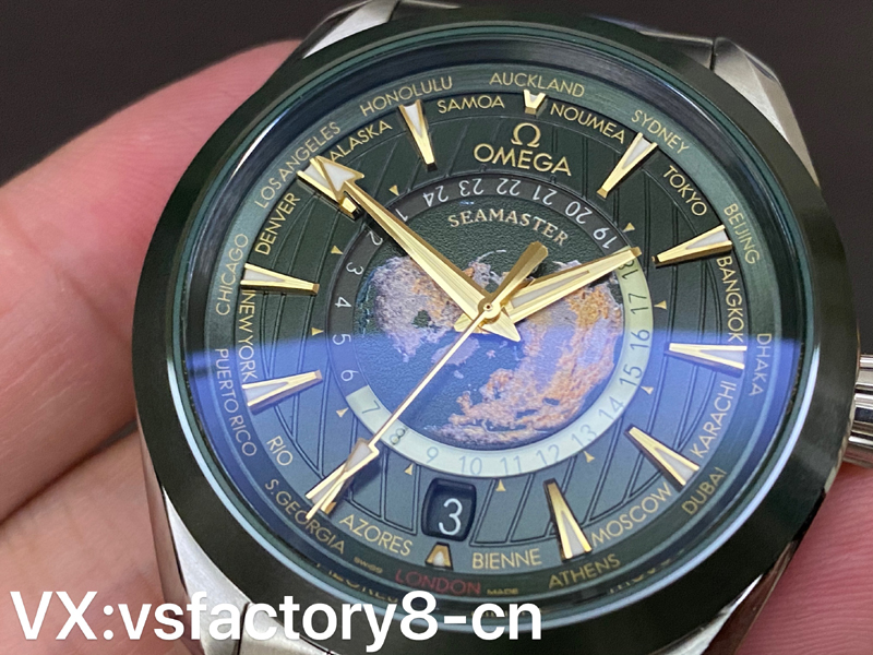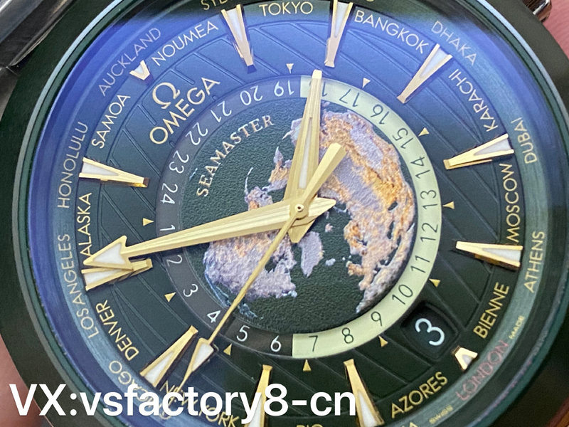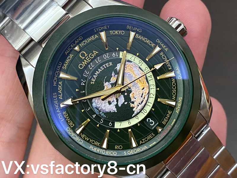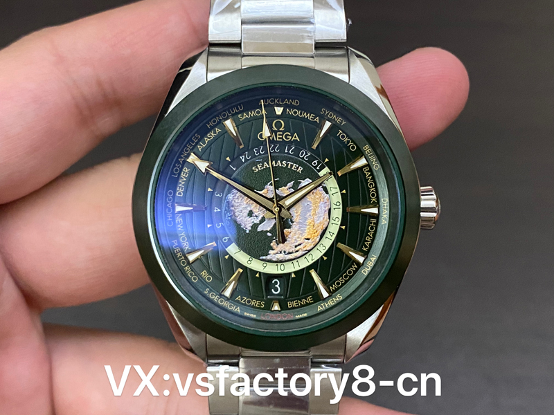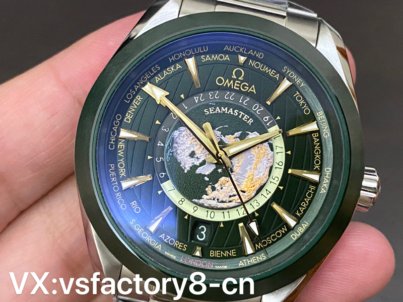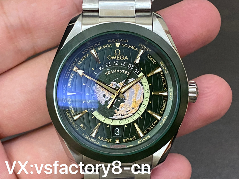 VS厂欧米茄绿色世界时海马150米复刻表220.30.43.22.10.001