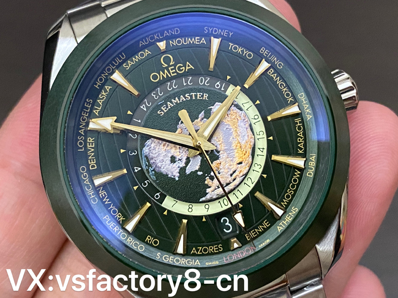 2023年VS厂顶级复刻手表官网新款欧米茄海马150米43MM Aqua Terra木绿世界时腕表。