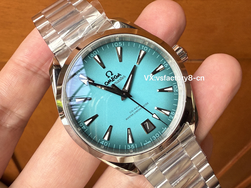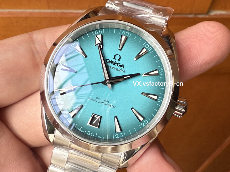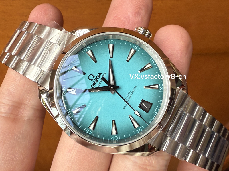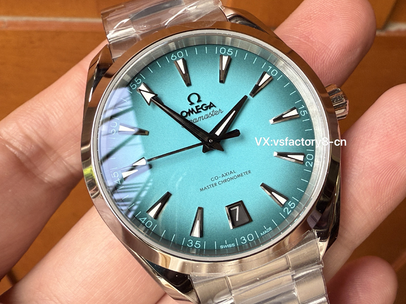 VS厂复刻表欧米茄海马150米复刻表41mm渐变“绿松石”色表盘,中央明亮,边缘较暗,逐渐渐变过渡至深邃的黑色,仿若踏入海洋的无尽幽邃之处,一眼沦陷的璀璨魅力让春日充满生机~