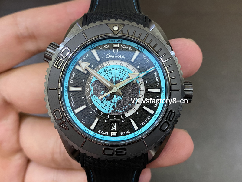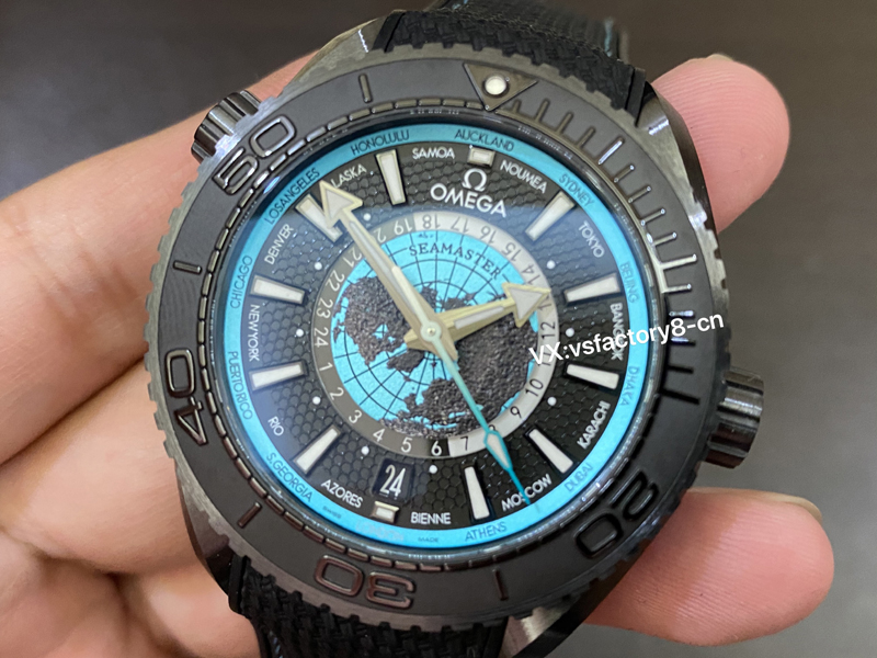 VS厂欧米茄陶瓷蒂芙尼蓝世界时海马600米复刻表215.92.46.22.01.006出货!