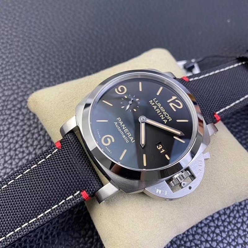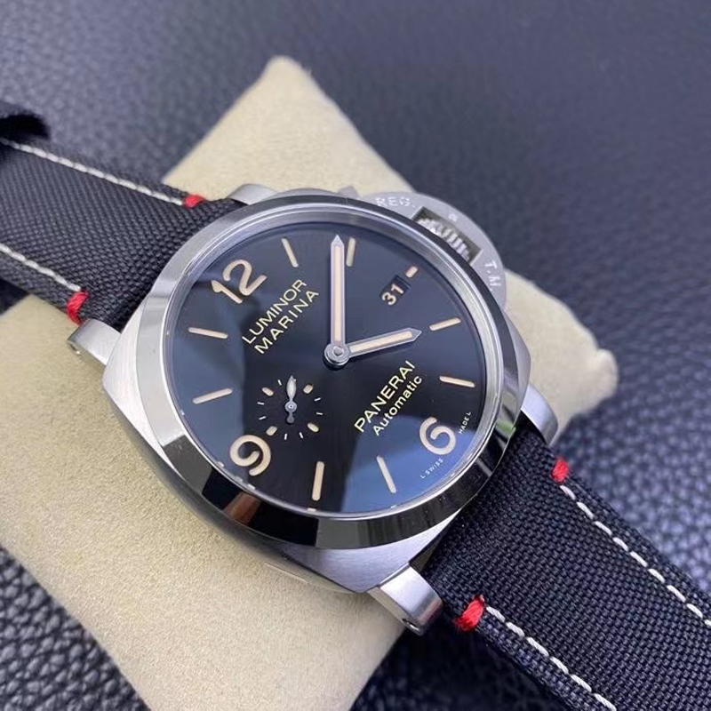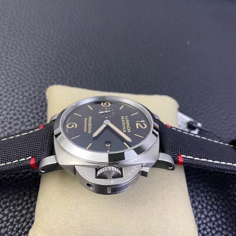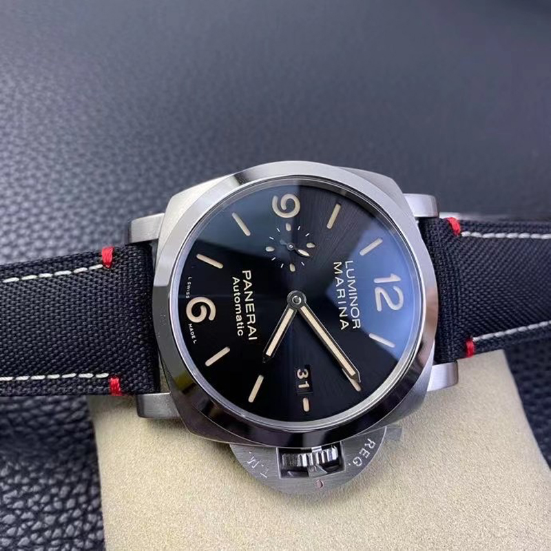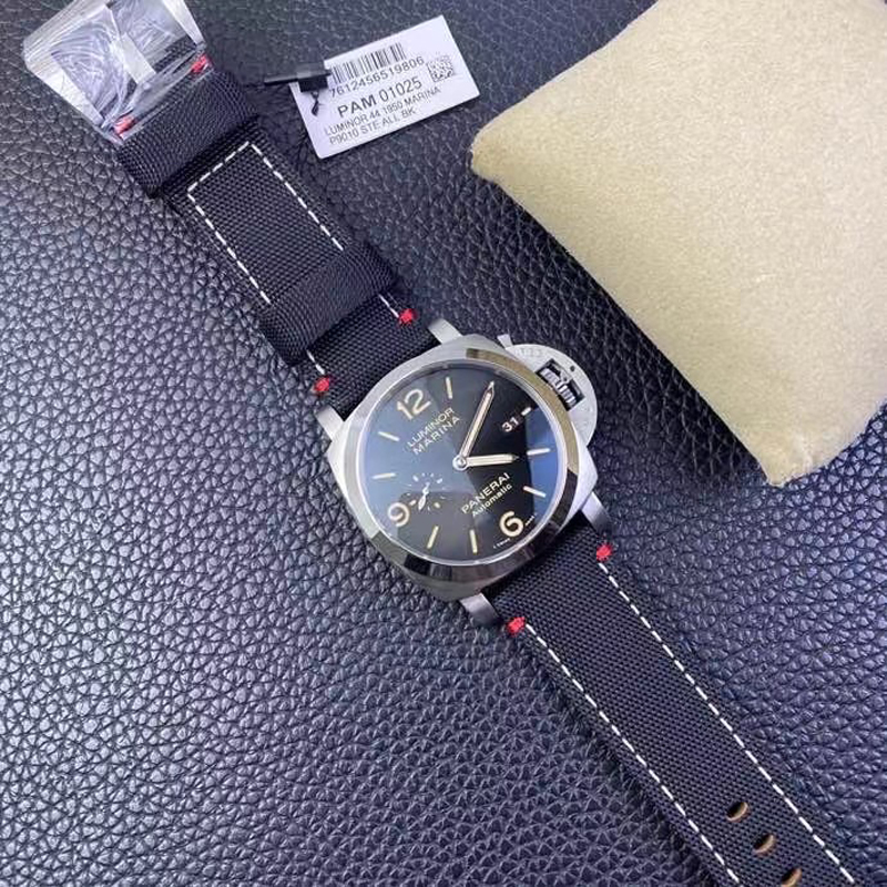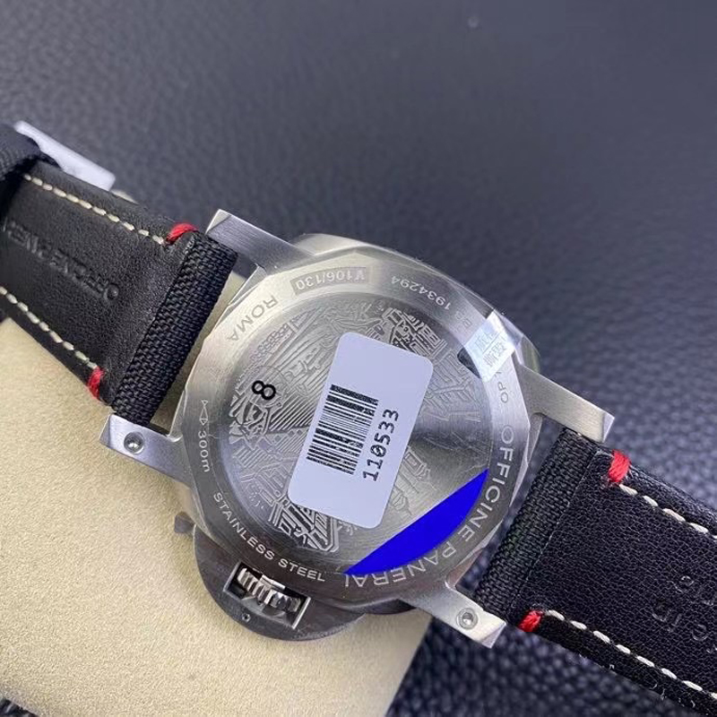 VS厂沛纳海PAM1025复刻表独特放射纹面 罗马底盖,带头手工缝制红线点缀。