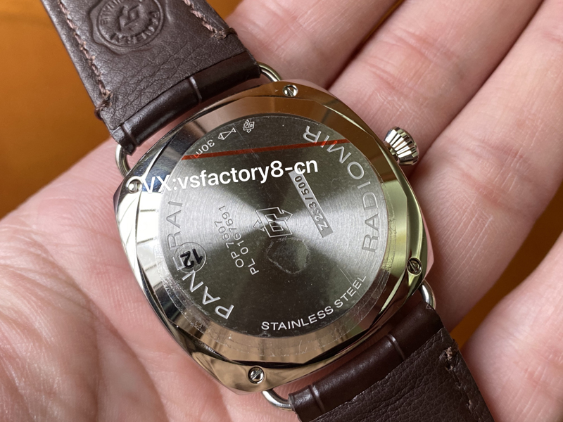 VS厂沛纳海1386复刻版镭得米尔系列镜面采用的是蓝宝石玻璃,镜面质地坚固可靠,复刻表沛纳海1386还原度比较高。