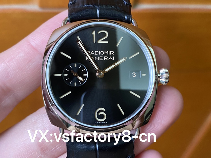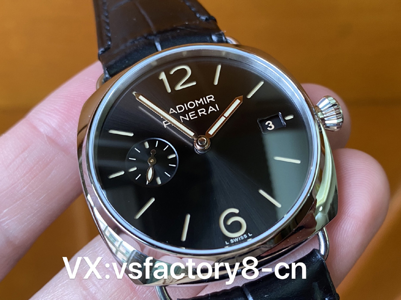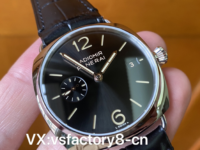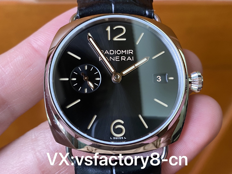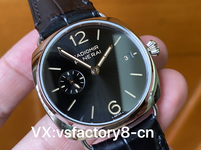 VS厂复刻表沛纳海1294还原度比较高,表盘采用经典款黑色字面,同样采用沛纳海最经典的三明治夹层结构。