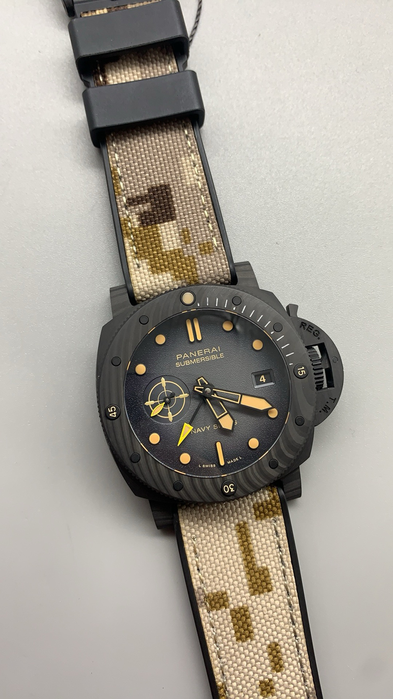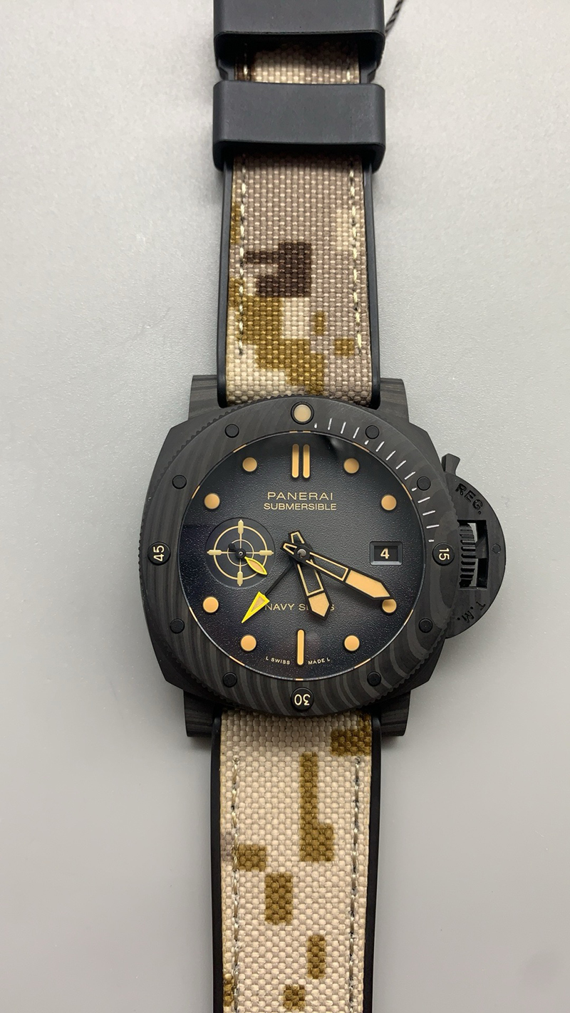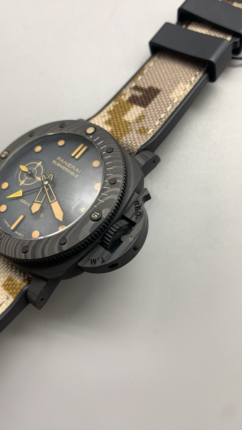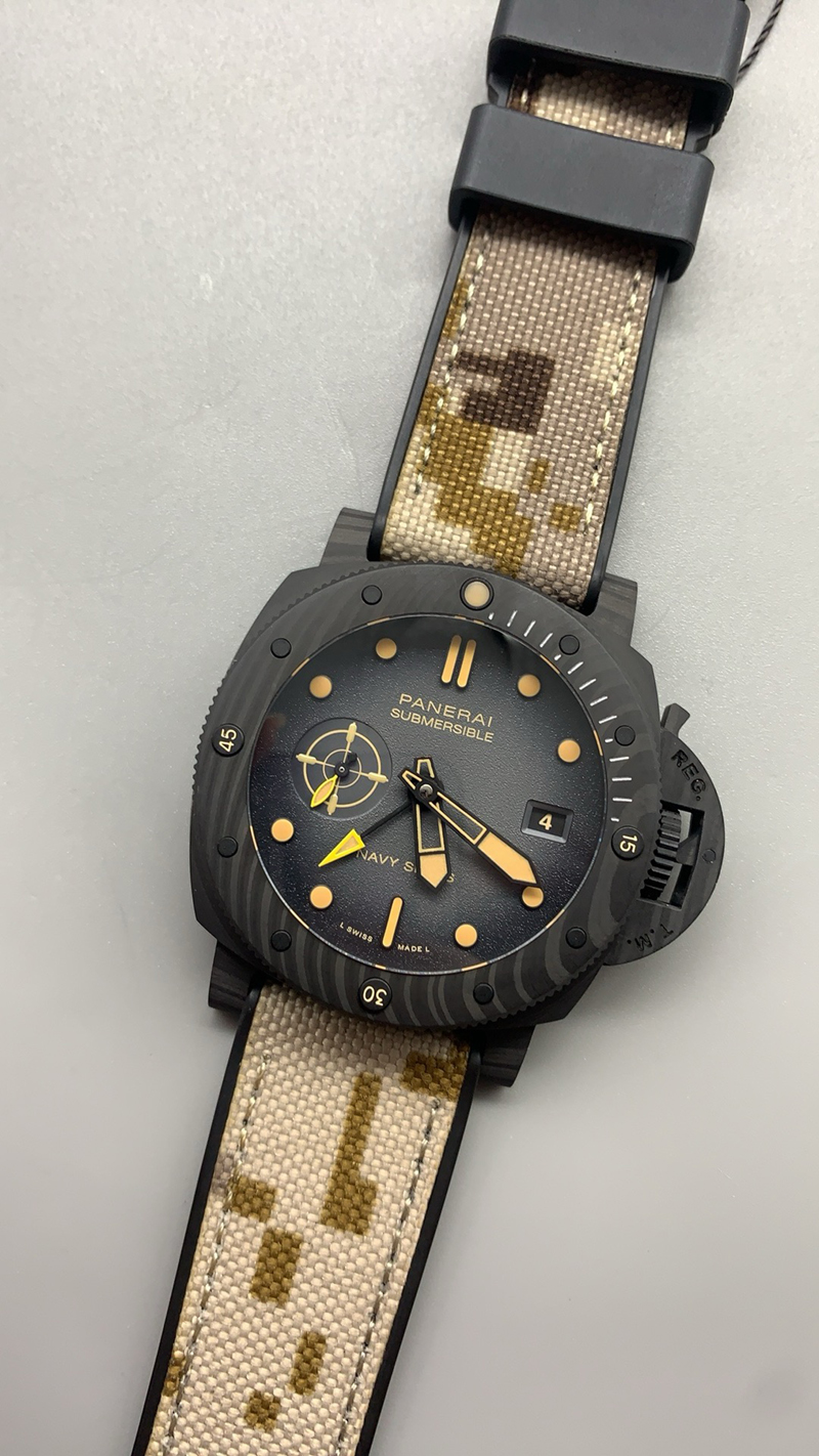 VS厂官网沛纳海pam1513独家研製的Carbotech™碳纤维材质,表圈和表壳材质相同,不过Carbotech™的特点在于它的纹路自成一格,且不会找到一模一样的样式。