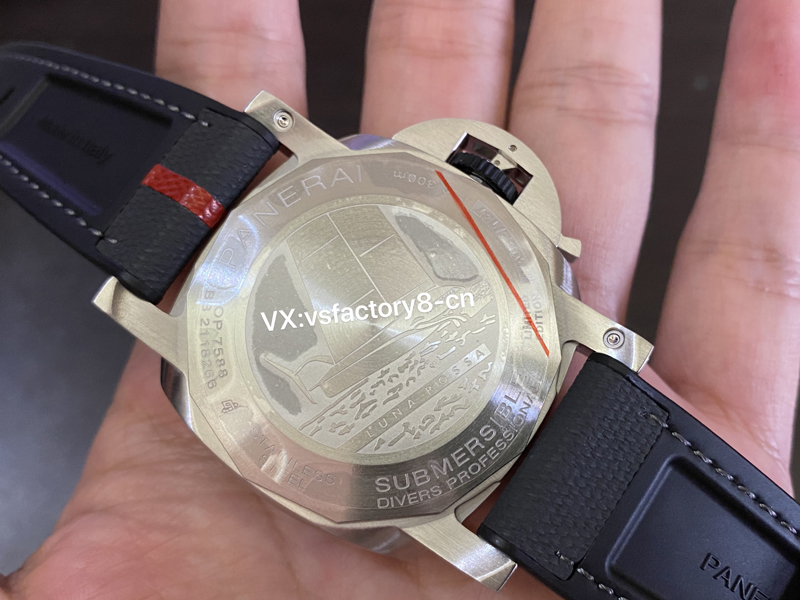 VS厂复刻表沛纳海1681采取旋入式表背镌刻Luna Rossa AC75帆船图案,同步原装一致。