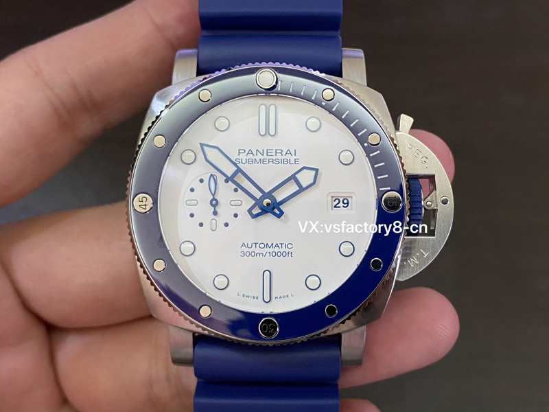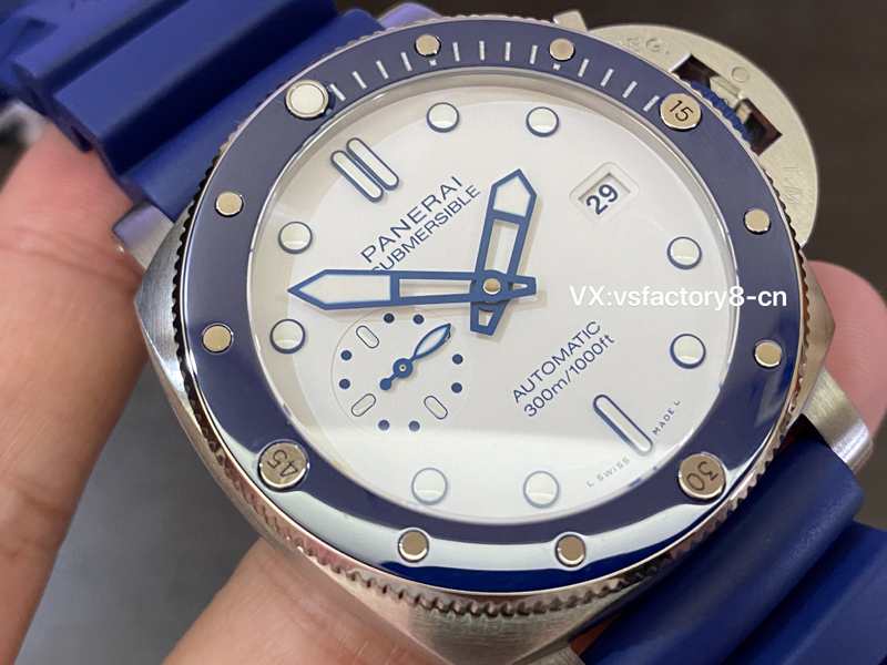 VS厂手表官网入手原装正版沛纳海pam1696进行开版制作,抛光式蓝色表圈精湛无比,表圈刻度细节做工完善。